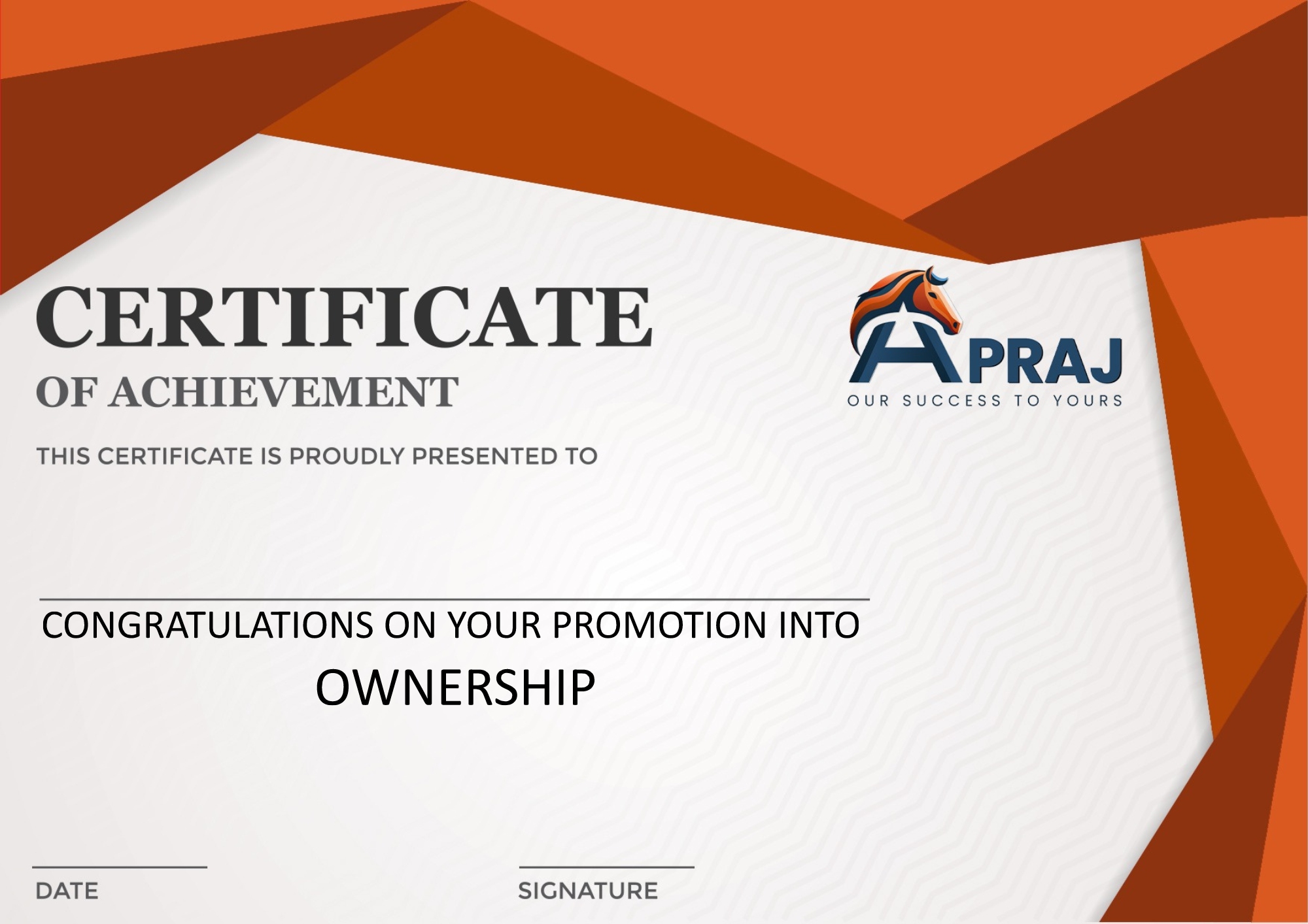 At The Apraj Organisation, we attribute our success to the driving force of our people. We prioritize the creation of a positive and empowering work environment, fostering growth, learning, and development. Proudly providing opportunities for career advancement, we employ a unique talent management approach, offering resources, training programs, mentorship, and internal promotions. We believe in equal opportunities for career progression, enabling our team to swiftly advance from business associate roles to management positions. Recognizing and valuing each team member's contributions, we are dedicated to ensuring they feel empowered and motivated to excel. Our people-centric approach has cultivated a strong, committed team delivering exceptional results for our clients.